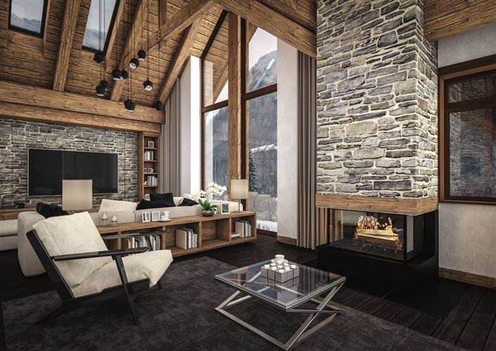 The exteriors are perfectly integrated into an exceptional setting in La Rosiere with wood and natural stone cladding façades. The residence has stone foundations, a structure, balconies in carved wood, and a slate roof.