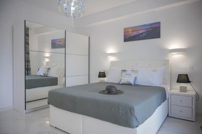 4 bedrooms with access to a balcony and two bathrooms. There is also a separate apartment with an impressively large kitchen, living room, bedroom, and bathroom.