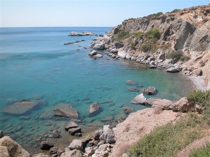 Bathing in the golden Greek sunlight just 100 meters from the beach are the Makrigialos Holiday Apartments in southeastern Crete. Makri Gialos is just a 30 minute drive south of Ierapetra, a port city of some 15,000 people, that is an economic and cultural center for the region, with its own hospital.