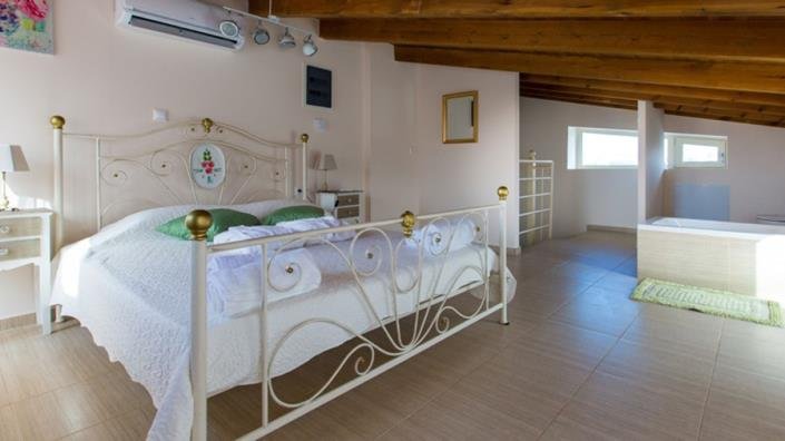 The villa is stone-built and has a living space of 240 sqm. It features 4 bedrooms and 3 bathrooms and is developed on 2 floors. On the ground floor (entrance floor), there is a living room, dining room, and high-quality kitchen, all in an open plan. Additionally, there is one bedroom and a bathroom with a hydromassage shower.