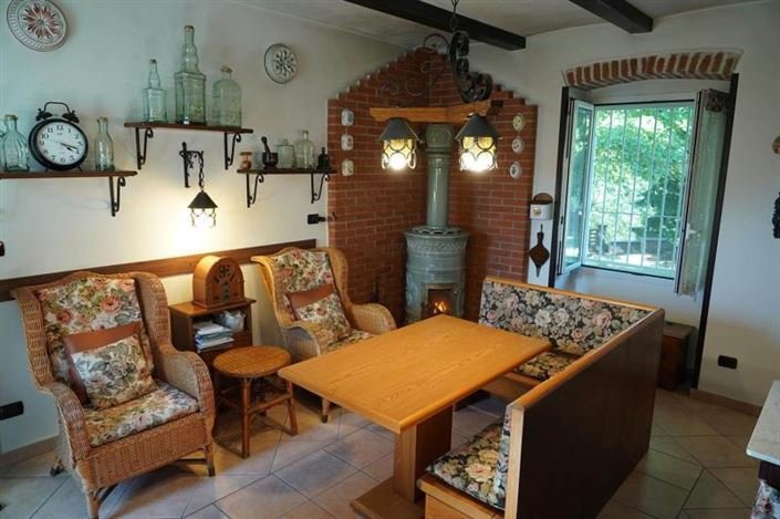 This property has preserved the original spirit of a rural and rustic house and consists of the main house buildings, a portico perfect for summer days, and storage in front of the house used as a hobby room and cellar.
