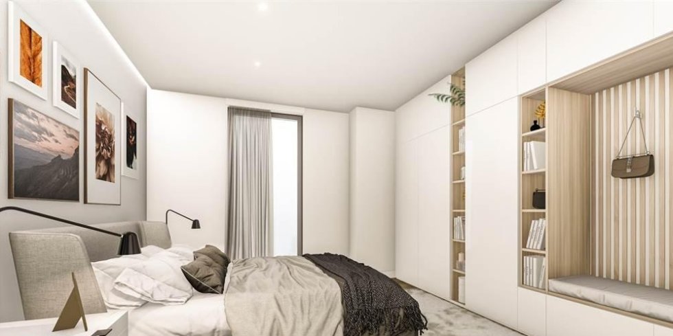 The top floor apartment is serviced by a lift and has a private roof terrace with a jacuzzi. The apartment consists of a large living room, two bedrooms and a bathroom with a window.