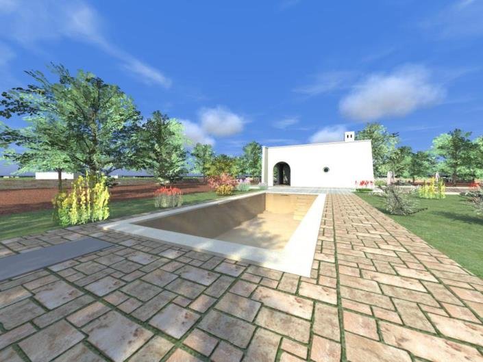 In the countryside of Ostuni, in the very first suburb, in a residential context, a highly populated, villa is under construction with a swimming pool.