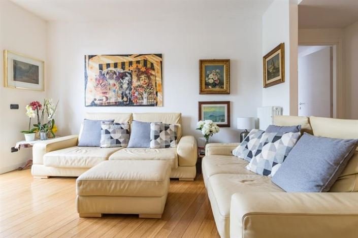 The flat in Blevio with terrace and lake view is in an exclusive position. On the branch of the lake which goes from Como to Bellagio, the property is inside a modern contest of few units. At the entrance, there is a spacious living area with access to the panoramic terrace.
