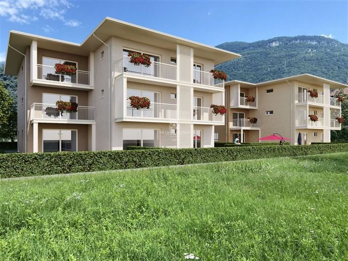 Apartment n. B5 - Apartment of 77 sqm (81 sqm commercial) on the second floor comprising entrance hall, living room / kitchen, two bedrooms, hallway, and two bathrooms. Covered terrace of over 7 square meters as per map. Garage. € 340.000,00 - Nice Lake view!