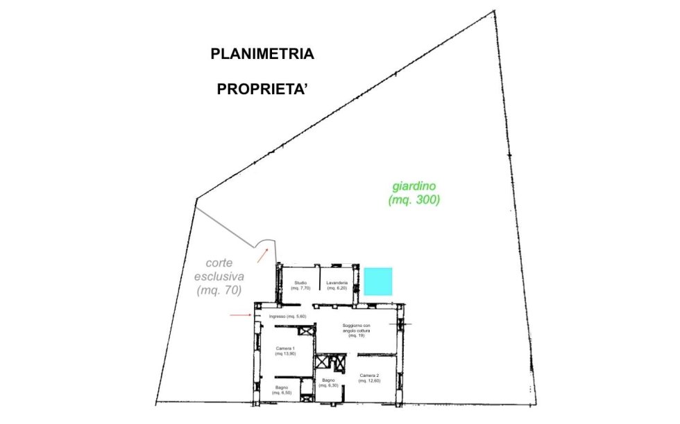 The property includes an exclusive courtyard of approx. sqm. 70 and the garden of approx. sqm. 300.