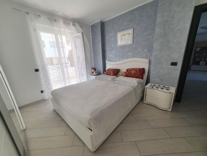 With mountain views and a distant sea from the balconies, the apartment is approx. 108msq with balconies. Located on the second floor (without an elevator) it comprises a large open space/kitchen, the lounge area has a pellet fireplace that feeds the central heating and access via patio doors onto the balcony, and there is a fully fitted kitchen with small utility area off. 2 generous bedrooms; both of which have access onto the balconies, 1 bathroom.