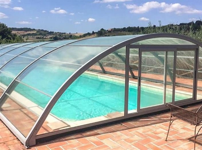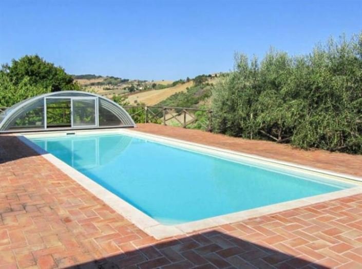 As impressive as the interior is, a great part of the magic of this home lies outside as well. Upon entering the gate of the property, you are transported into your dream Italian escape. From the graveled parking area, you step onto the cotto-tiled courtyard, and you behold the 6,6 ha of panoramic land. The 12m long swimming pool is one of the gems of the property, as it's also shielded by a removable glass cover.