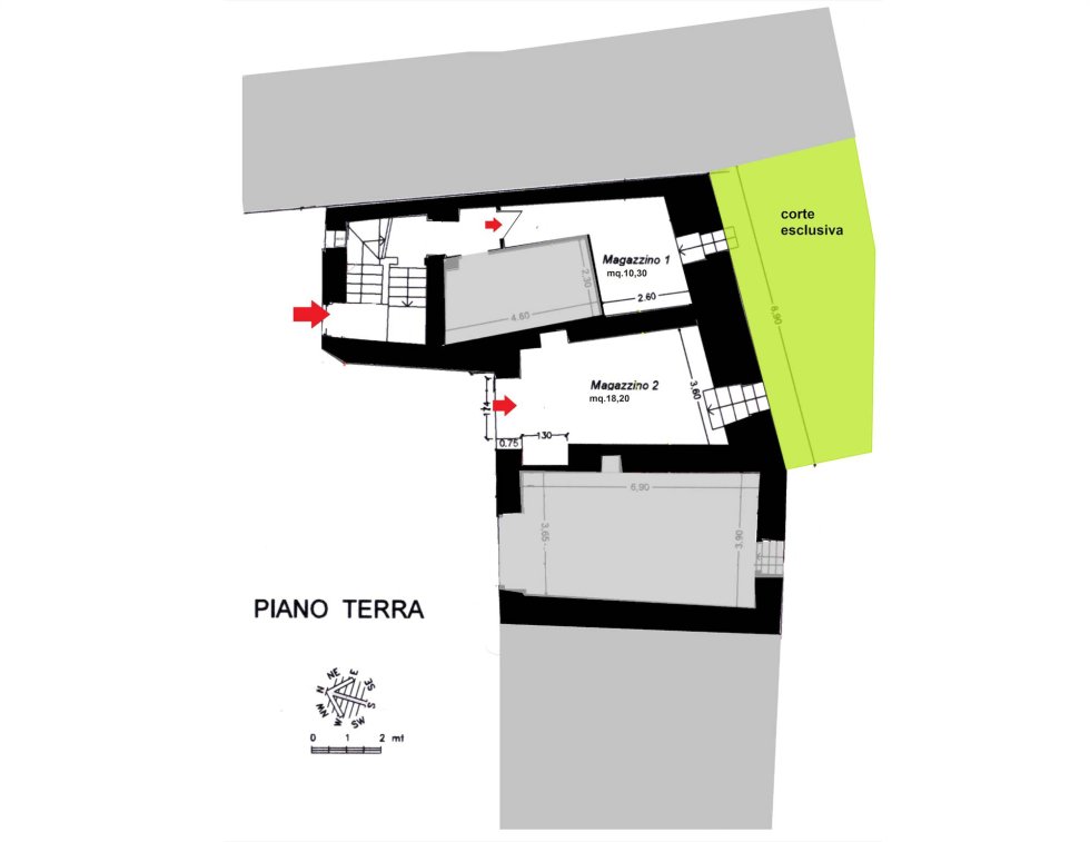 The warehouses located on the ground floor, which have direct access to the exclusive garden, have an entrance directly from the public road.