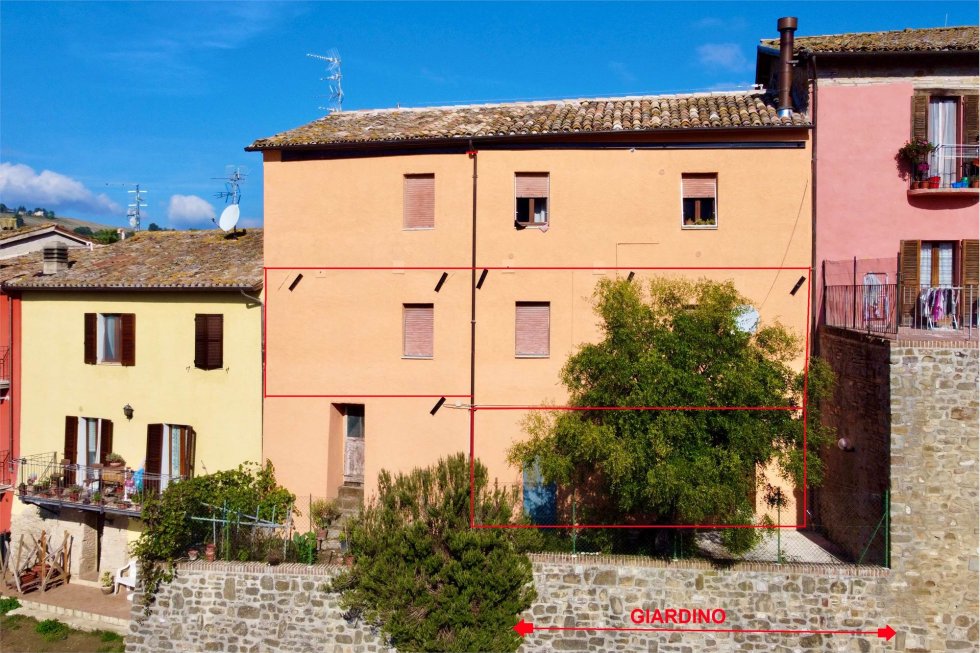 Close to the southern walls of the historic center of Camporotondo di Fiastrone, for sale an apartment of approx. 80 (conventional) located on the first floor without lift with warehouses of approx. 21 (conventional) and access to the garden sqm. 40 sites on the ground floor.