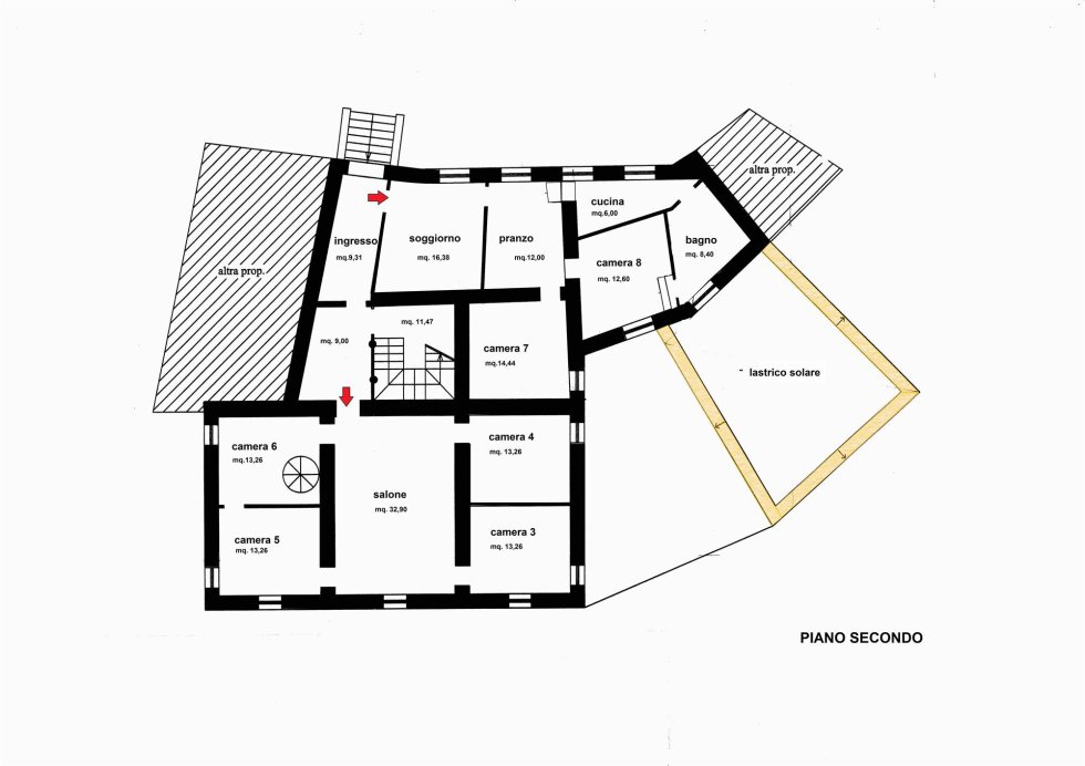 Palazzo Gentili, developed on 3 levels for total sqm. 785 (conventional) occupies the south-east portion of the historic center of Rapagnano, part of the palace were the gardens downstream, now public, dedicated to the same Gentili family.