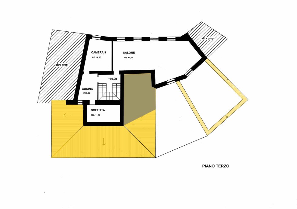 Over time the building has been divided into different real estate units, partly with independent entrances, and in any case all interconnected, lending itself both to different subdivisions or to conversion into a single real estate unit with commercial / accommodation potential. The current apartments have degrees of finishing from habitable to “builders finish” where the most interesting elements such as wooden trusses of the rooms on the upper floor in addition to the considerable height of the rooms overlook both the historic center and the Adriatic sea, which is aprox 20 km away.