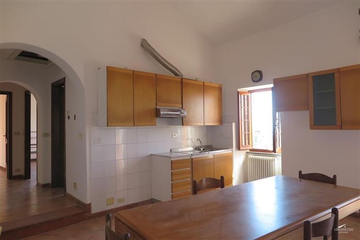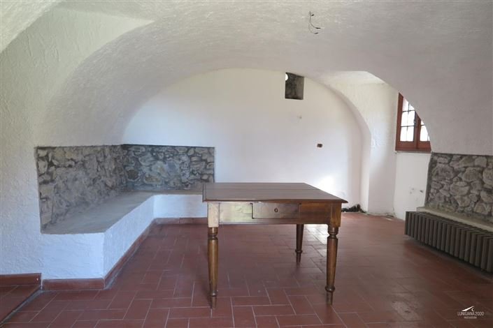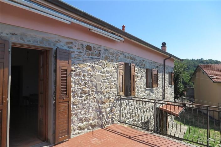 The property, free on three sides, has easy access by car and comprises; Living room with open plan kitchen, large panoramic terrace, hall, bathroom with shower, double bedroom, and a single bedroom on the first floor; Taverna with fireplace and another room, hallway, bathroom with bath, stairwell and cellar on the ground floor. Central heating (natural gas), but the boiler must be replaced.