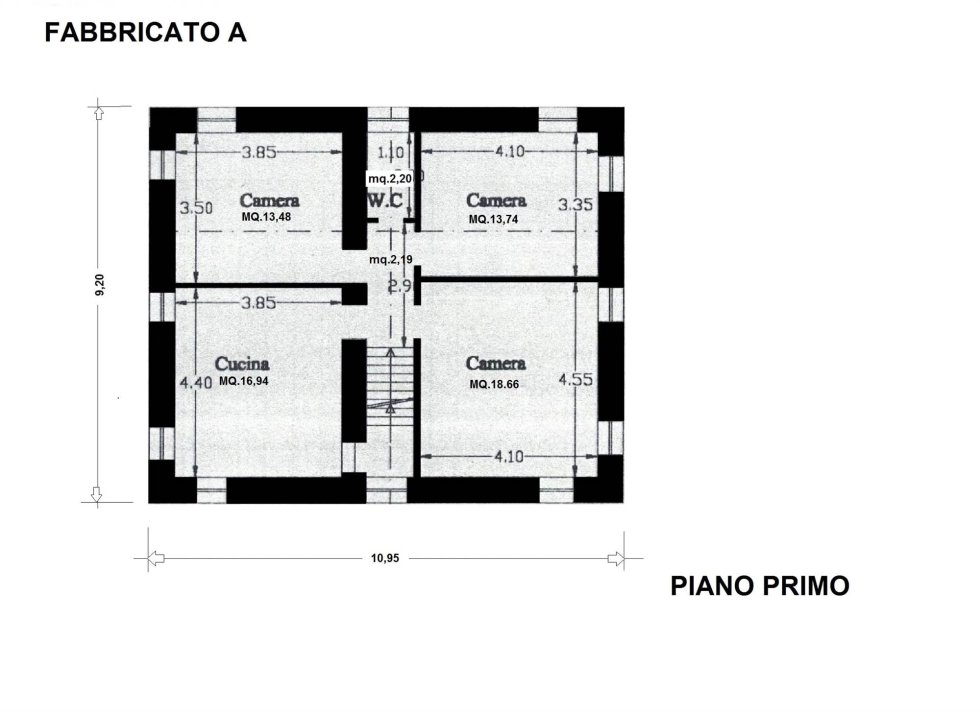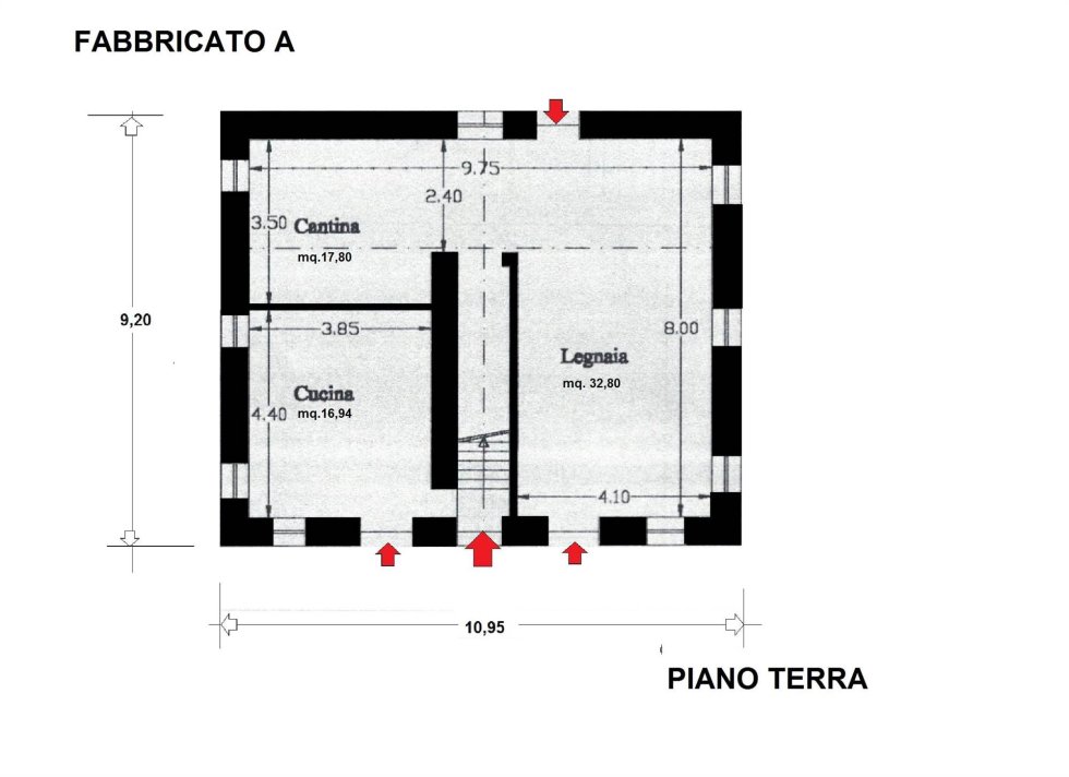 A) Farmhouse on two floors with earthquake contributions for reconstruction (damaged by the 2016 earthquake) of approx. 190, with the possibility of reconstruction in a different position within the court.