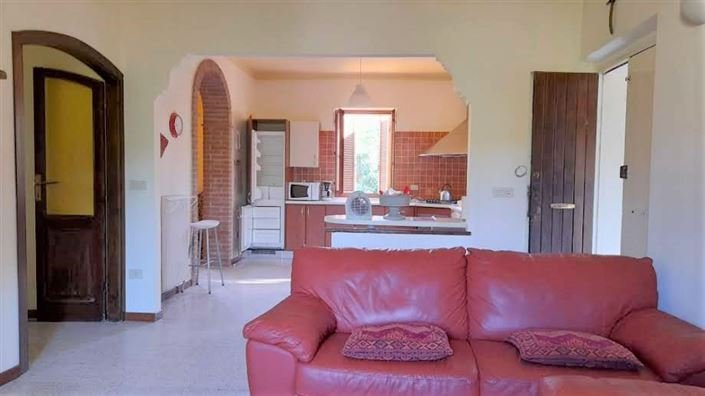 The detached house provides about 284m2 of accommodation over 3 floors and was initially updated to create accommodation for multiple families. On the ground floor, there is an independent apartment consisting of a living room, kitchen, bedroom, and bathroom as well as 2 garages and a boiler room. External stairs lead to a covered loggia and the entrance to a further independent apartment on the first floor. This apartment consists of a large living room with fireplace, dining room, separate kitchen, 3 double bedrooms, and a bathroom. Internal stairs lead to the second floor where there are a further 6 rooms that could be used as bedrooms, in addition to a bathroom with shower.