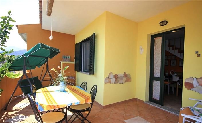 The villa is reached across a small courtyard and spacious veranda which leads into the open plan living room with a corner kitchen as well as a bathroom. Stairs lead to the first floor with 2 bedrooms, one of which leads to a further veranda with lovely sea views, and a second bathroom. On the lower ground floor, there is a further self-contained apartment consisting of a living room with a corner kitchen, hallway, bedroom, and bathroom.