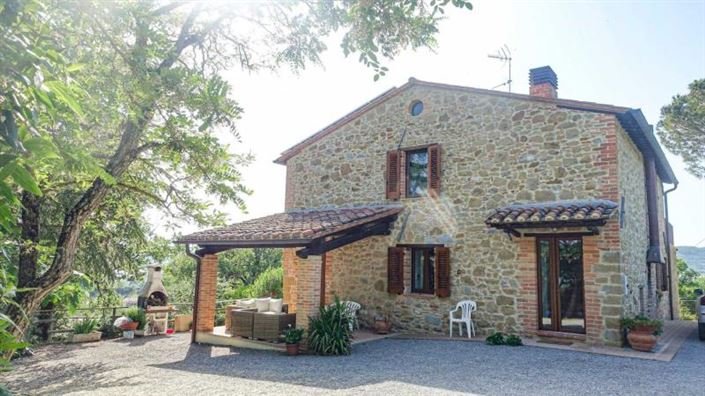 Possibility to build a swimming pool.The photovoltaic system on the roof (6 kW), solar panels for hot water production, natural gas heating with a new generation boiler, town water, alarm system, and air conditioning in almost all rooms. The entire property is completely fenced off and has an automatic gate for access, and boasts excellent southwest exposure to sunsets ranging from the Amiata to Lake Trasimeno to Perugia.