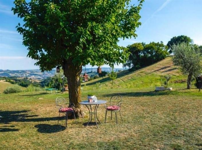 The property with 5.000 sq.m. mature garden. With a separate negotiation, it is possible to buy additional 5 hectares of land, with a small vineyard of Bianchello (local wine), an olive grove, and a vegetable garden. The plot is extensive and the grounds are mainly flat, so they are good to keep animals, including horses.