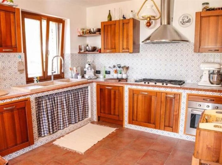The house was restored with a project for an agriturismo in mind, so a part of the ground floor is occupied by a fully equipped, professional kitchen in steel, a closed veranda of about 60 sq.m. to accommodate guests for lunch and dinner, 2 bathrooms and a storage.