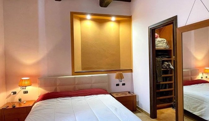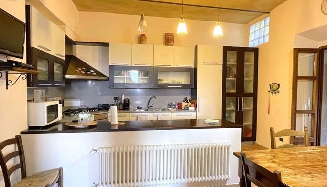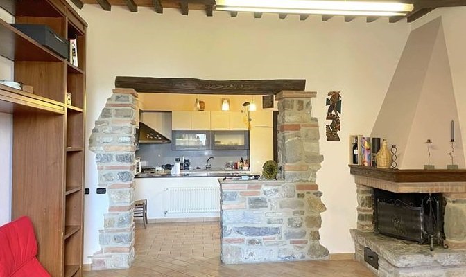 Beautifully renovated two-bed apartment (135 sqm) with fine original Tuscan details and contemporary finishes, located in a period building in the village of Castelnuovo Val di Cecina, with a garden and garage and a large cantina (store room). Recently renovated by the current owner, a quality builder, was making his own family home and has spared no expense. The apartment is on the first floor of a building where there are two other apartments in the building. The character entrance is full of charm with small frescoed vaults and a large door overlooking the street.