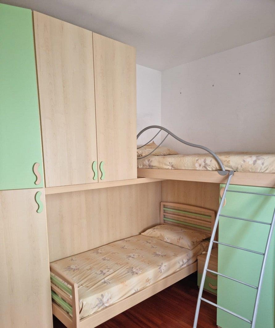 A large two-room apartment of 62 square meters, with an open space entrance and living room, equipped with an open kitchenette, a bedroom, a bathroom, cellar. and garage.