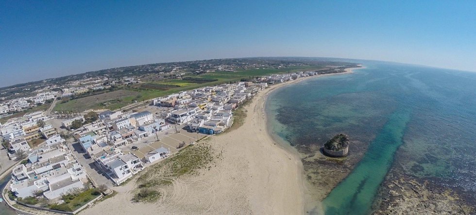 A sea view villa located in the hills, with panoramic views of the beach of Pescoluse. The property is located in a garden of 1,800 square meters, a part of which is embellished by centuries-old olive trees, ornamental plants, flowers, mastic, oleander, pines, and cypresses. The presence of these trees allows you to have shade in various areas of the garden.
