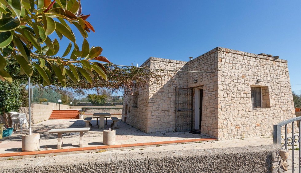 The plot of 11,000 square meters with a stone house of 40 covered square meters and swimming pool of 32 square meters, plus a raw Villa, to be completed, with the possibility of creating a swimming pool. The large land is partly dedicated to the cultivation of the garden, partly to orchards and olive groves.