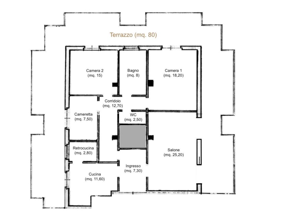 MONTEGRANARO - PENTHOUSE SQM. 130 WITH PANORAMIC SEMI-PERIMETER TERRACE. FOR SALE.