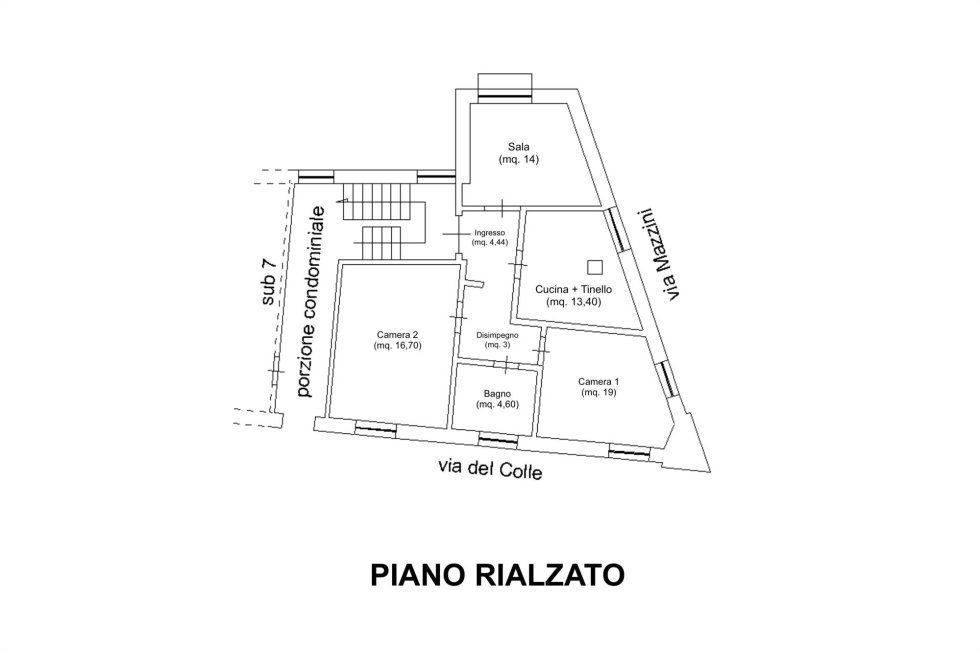 In the historic center of Montegiorgio, exactly in Via del Colle, For sale an apartment of approx. 85 (conventional) located on the mezzanine floor without a lift.