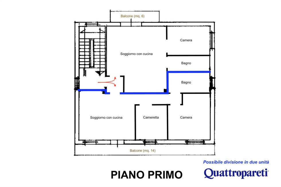 Kitchen with fireplace sqm. 26.80 with balcony sqm. 2.00 pm;