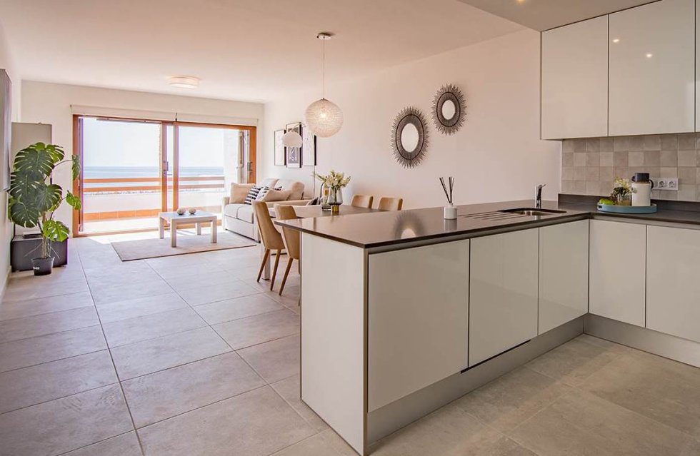 Located in a unique setting at the end of the village of San Juan de Los Terreros, Pulpi, Almeria. Spain. Facing the beach, the only thing that divides it from the sea is the promenade with lush gardens, walkways, and water features. With its beautiful design in white, reminiscent of an Andalusian village, has a selection of restaurants, shops, beauty salon, bank, supermarket and sports centre with a gym and athletics tracks.