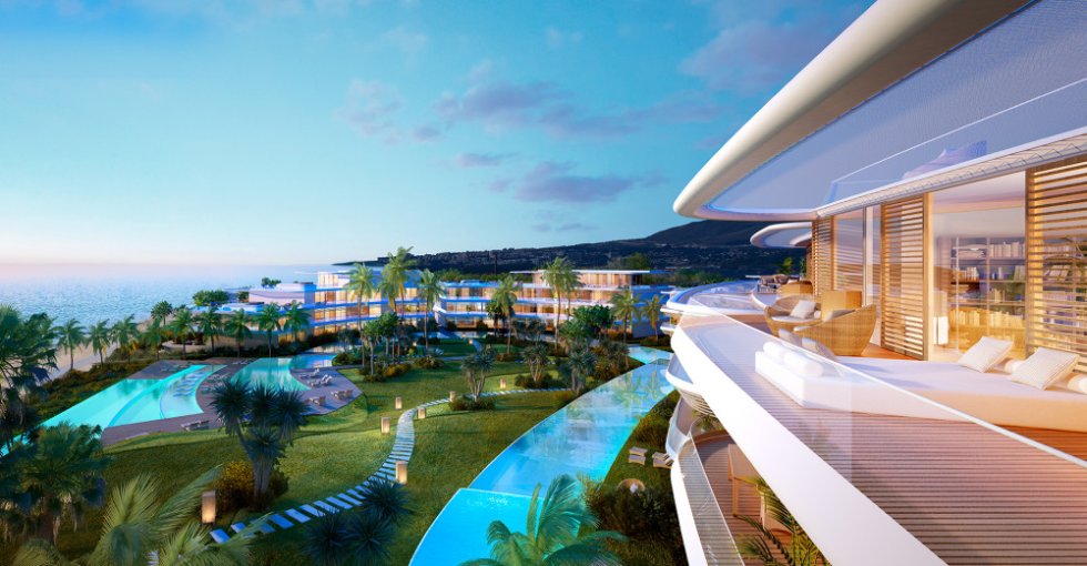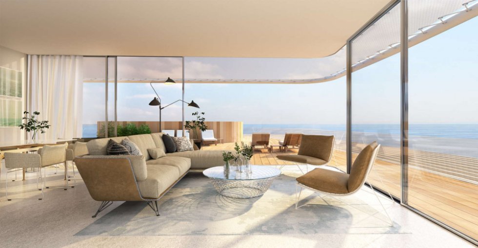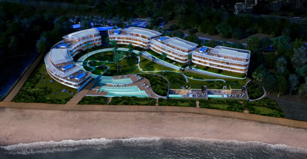 All surface areas are pedestrianized and the buildings are exquisitely arranged around a garden, the boundaries of which blend seamlessly with the sand of the beach. Once again, the avant-garde architecture combines with nature to offer an unparalleled project.