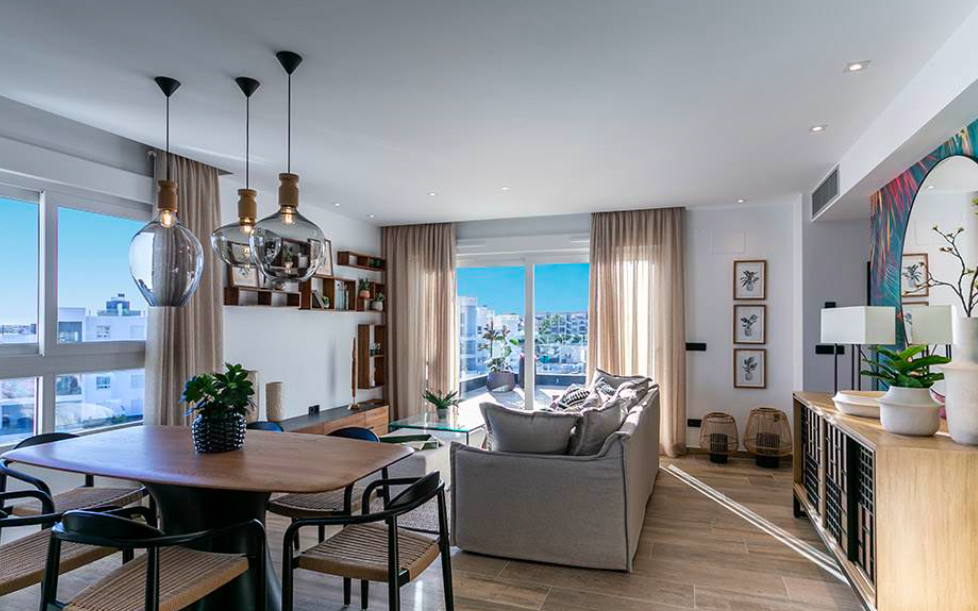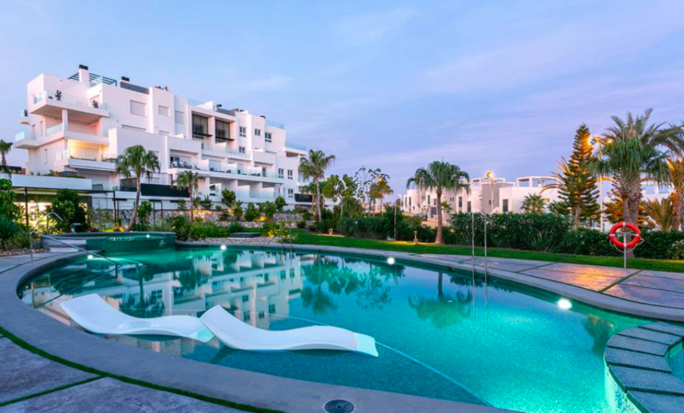 There is a distinct “tropical island” feel here, created by installing exclusive green spaces with two outdoor swimming pools, leisure & relaxation areas, integrated hammocks, separate children’s area and water jets. There is a communal gym with jacuzzi, sauna and is perfect for both indoor and outdoor use. You also have the option of parking spaces and storage rooms underground with the properties. For a tropical taste of paradise here in Spain, this residential ticks all the boxes…