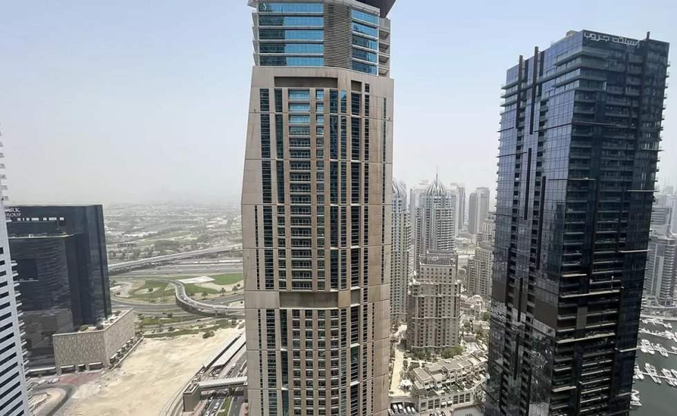 The apartment itself is on a mid-floor in one of the tallest residential towers in Dubai Marina. This allows for expansive views of the Marina and Golf Course.