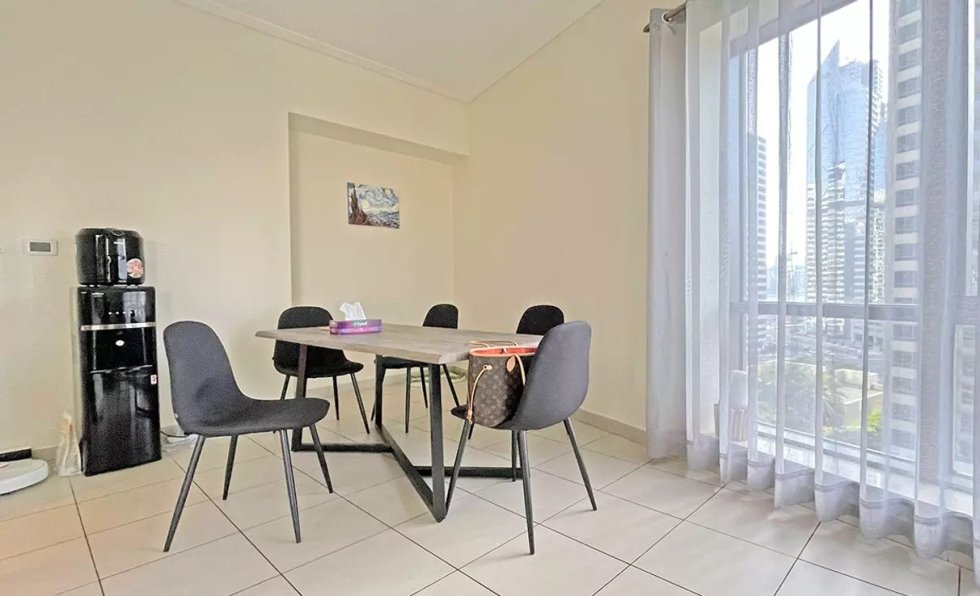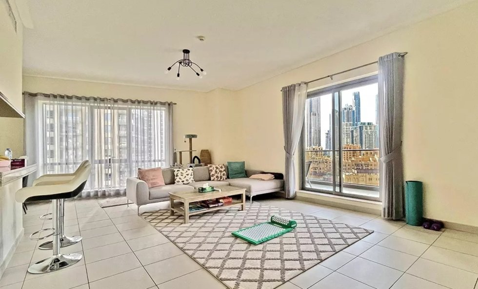 Most sought-after layout, spread over 1663 sq. ft. the apartment comprises a living/dining area, and a semi-open kitchen that leads into a storeroom that could also be used as a study. Both bedrooms benefit from en suites, there is a guest bathroom and a large balcony with full Burj Khalifa views.