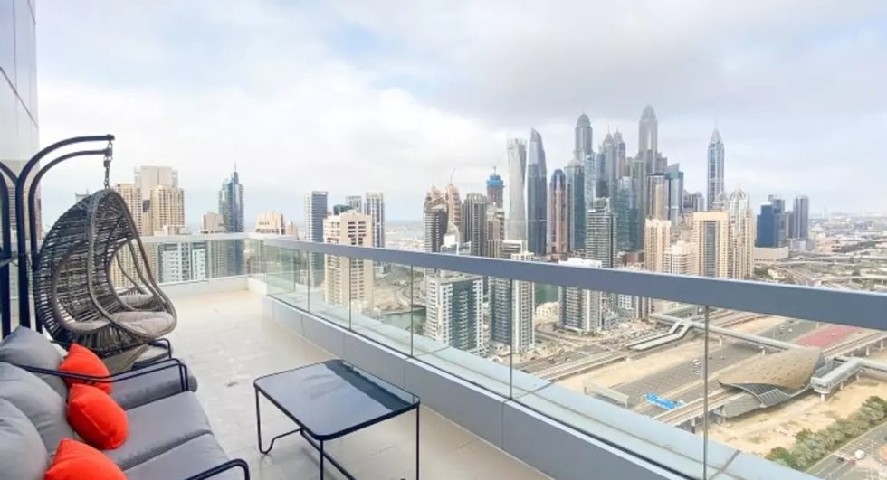 The terrace for this unit is huge that can be accessed from the living room and both bedrooms. The apartment boasts breathtaking views of the Marina skyline, SZR, you can also see the Burj Al Arab!