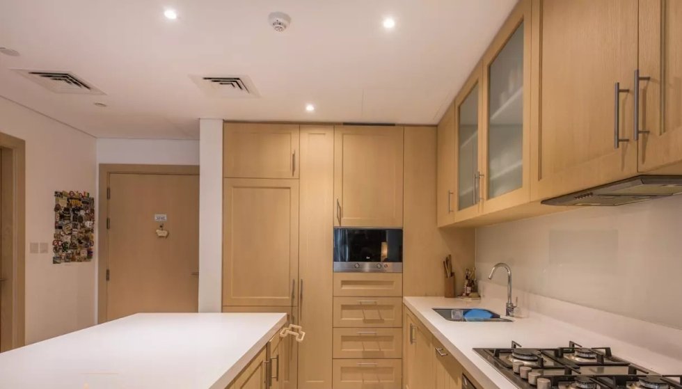 A large balcony with stunning Pool Views features an American-style, fully fitted kitchen. It offers a spacious master bedroom that comes with an attached bathroom and walk-in closet.