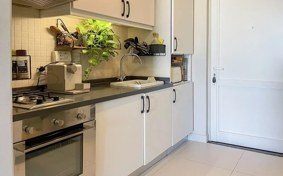 Semi-furnished studio apartment in Palm Views East. The apartment has high-quality finishing, it has a fitted kitchen with a gas stove and a large balcony with a sea and iconic Burj Al Arab view.